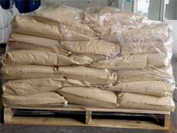 复合纸袋包装,采用复合编织袋内衬一层考铝箔纸真空包装,每袋净含量25KG。密封性能良好。 |